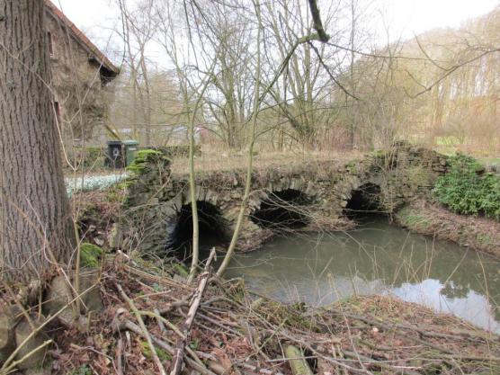 Am ehemaligen Gut Overkamp befindet sich noch das Mühlengebäude mit einer alten Bogenbrücke.